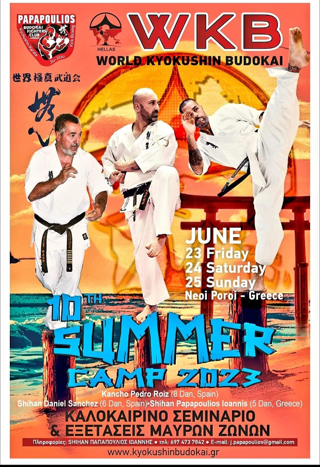 Desde el viernes 23 hasta el domingo 25 de junio se llevó a cabo el Curso de Verano de Grecia. Este fue organizado por Shihan Papapoulios Ioannis. En esta oacsión como instructores se hallaban Kancho Pedro Roiz, Shihan Daniel Sánchez,